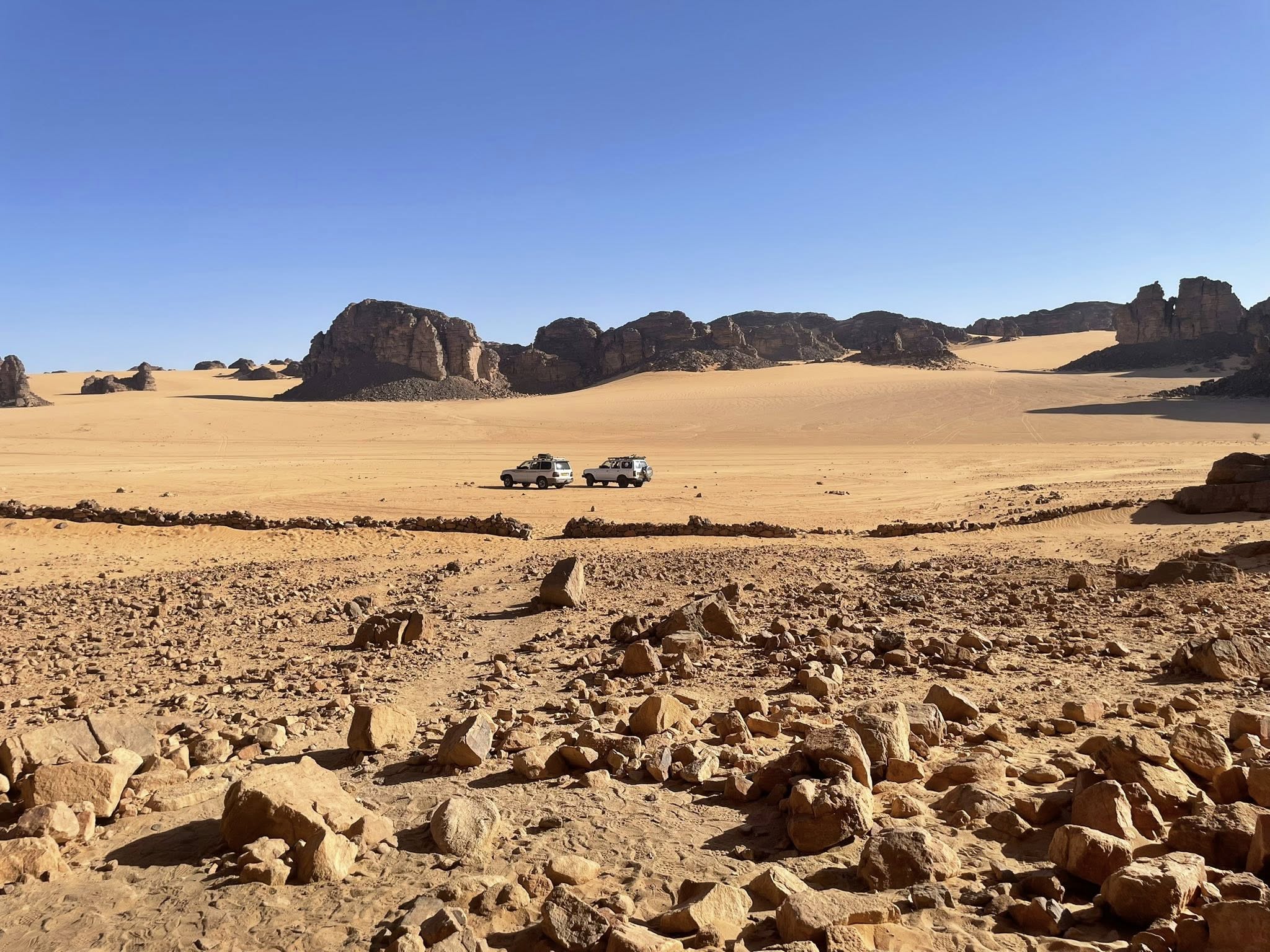 Nous avons été accueillis avec une bienveillance rare par un groupe de Touaregs, professionnels, rassurants et profondément joyeux. Leur présence, leur humour et leur savoir du désert ont enveloppé le voyage d’une sérénité lumineuse.